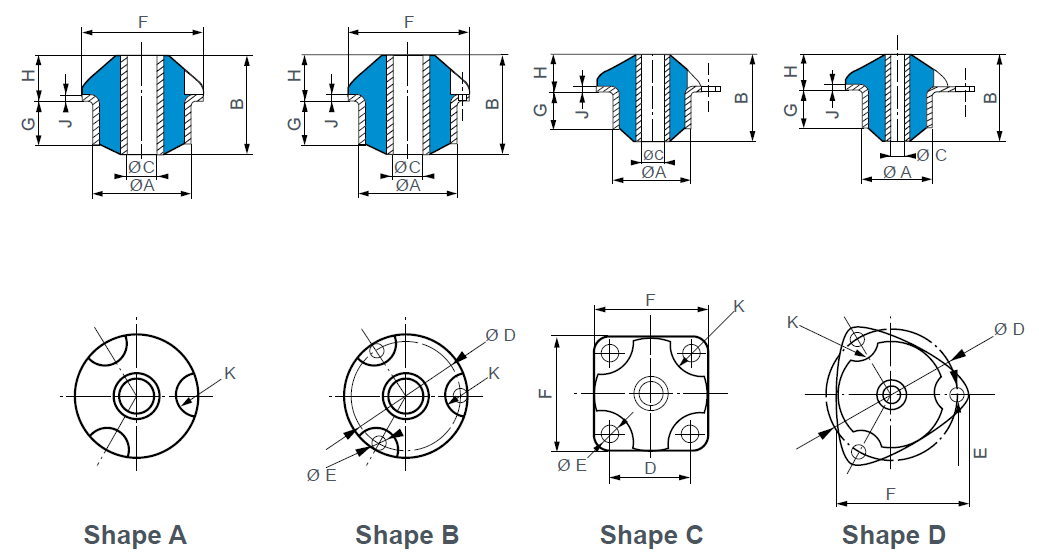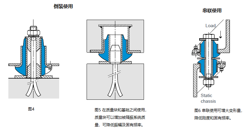 该系列隔振器含金属内管和外套,橡胶通过硫化和金属件粘接,外套安装法兰上有安装孔