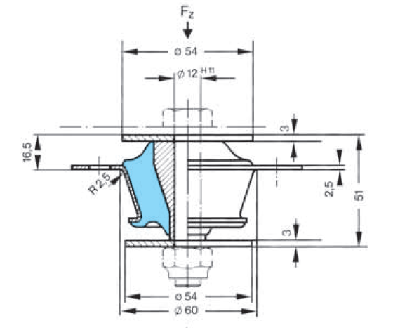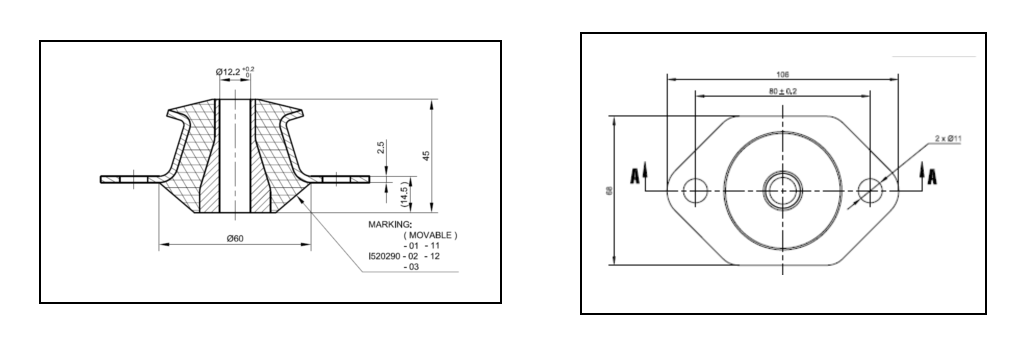该系列隔振器含锥形外法兰和锥形管,橡胶通过硫化和金属件粘接